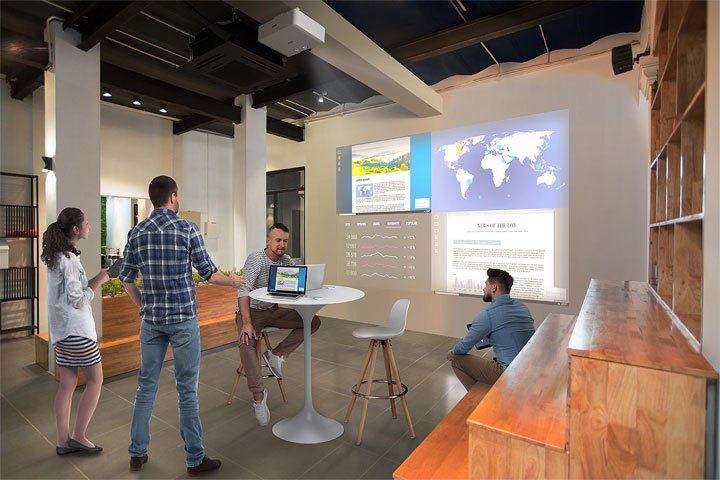 Epson EB-L520U cho phép chia nhỏ lên đến 4 màn hình và kết nối đồng thời 4 thiết bị để chia sẻ màn hình. Đây là tính năng nổi bật, phù hợp với các cuộc họp hay trong các tiết học, giúp cho người dùng tiết kiệm thời gian khi muốn trình chiếu nhiều thông tin cùng lúc mà không muốn bị gián đoạn khi thay đổi slide trình chiếu.